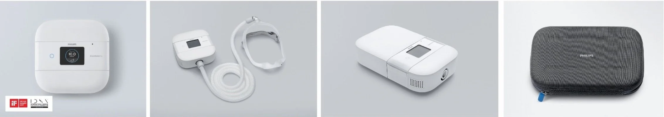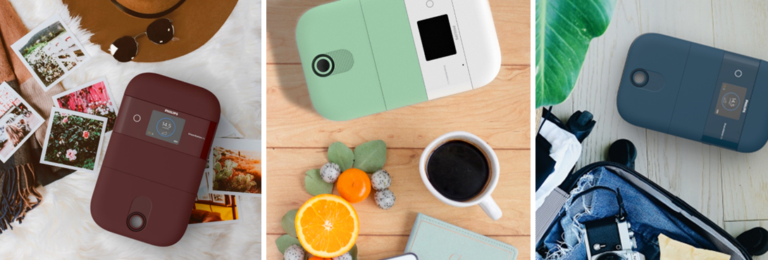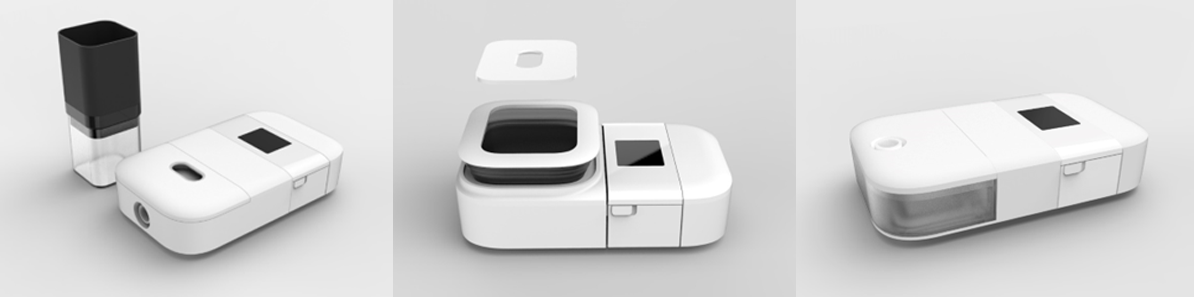 DreamStation Go is a CPAP device optimized for traveling, with goals of making it smaller, giving it a more consumer aesthetic, and accompanying the loose ends (power cord + power supply) into the housing.
